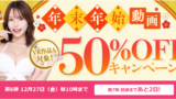 キャンペーンにエントリー&【50%OFFセール第○弾】の表記がついた商品を購入すると購入点数に応じて特典動画をプレゼント。